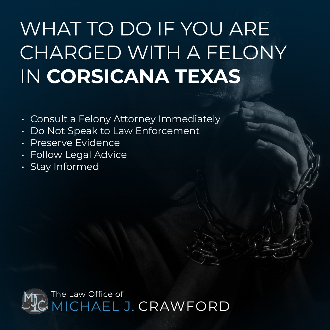 If you are facing felony charges in Corsicana, it's crucial to take immediate steps to protect your rights: